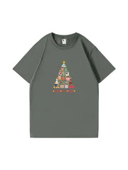 Christmas Tree Printed Cotton T-Shirt Festive and Comfortable Tee for Holiday Cheer and Casual Celebrations