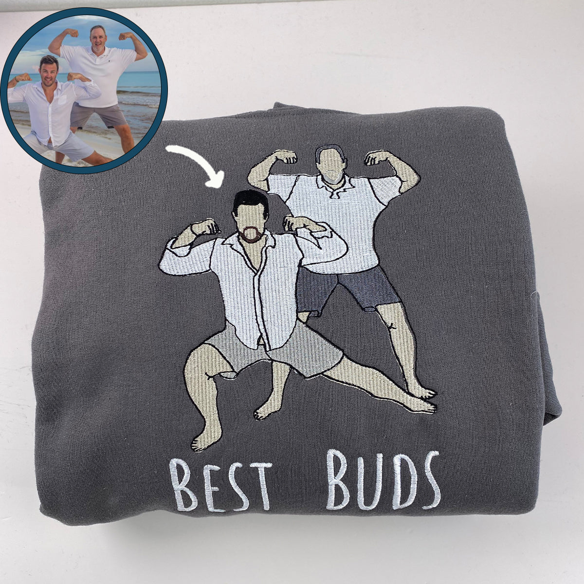Unleash your daring side with our Custom Bestie Sweatshirt, featuring a personalized photo and name on the sleeve. Show your best friend just how much they mean to you with this unique and stylish gift. Ready to take on any adventure, this sweatshirt is the perfect way to showcase your friendship.