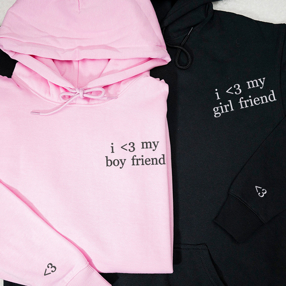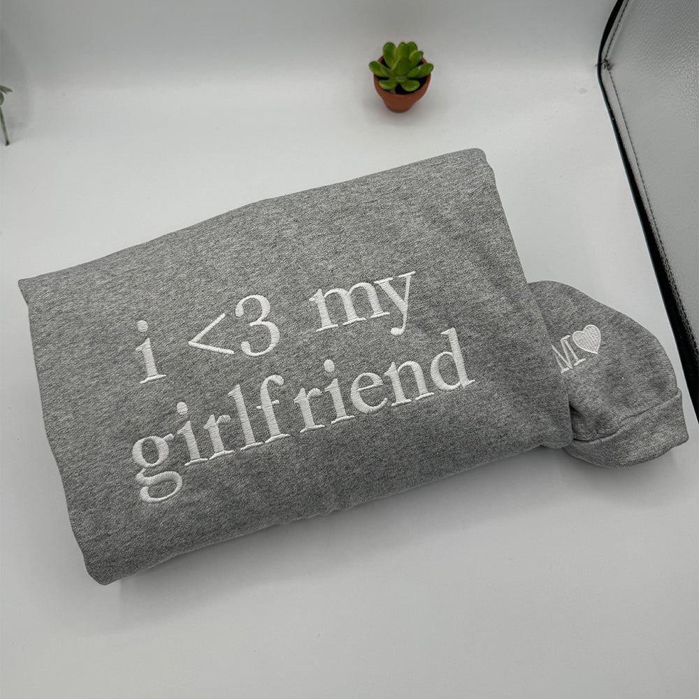 Custom I Love My Boy Girl Friend Sweatshirt with Initials on Sleeve