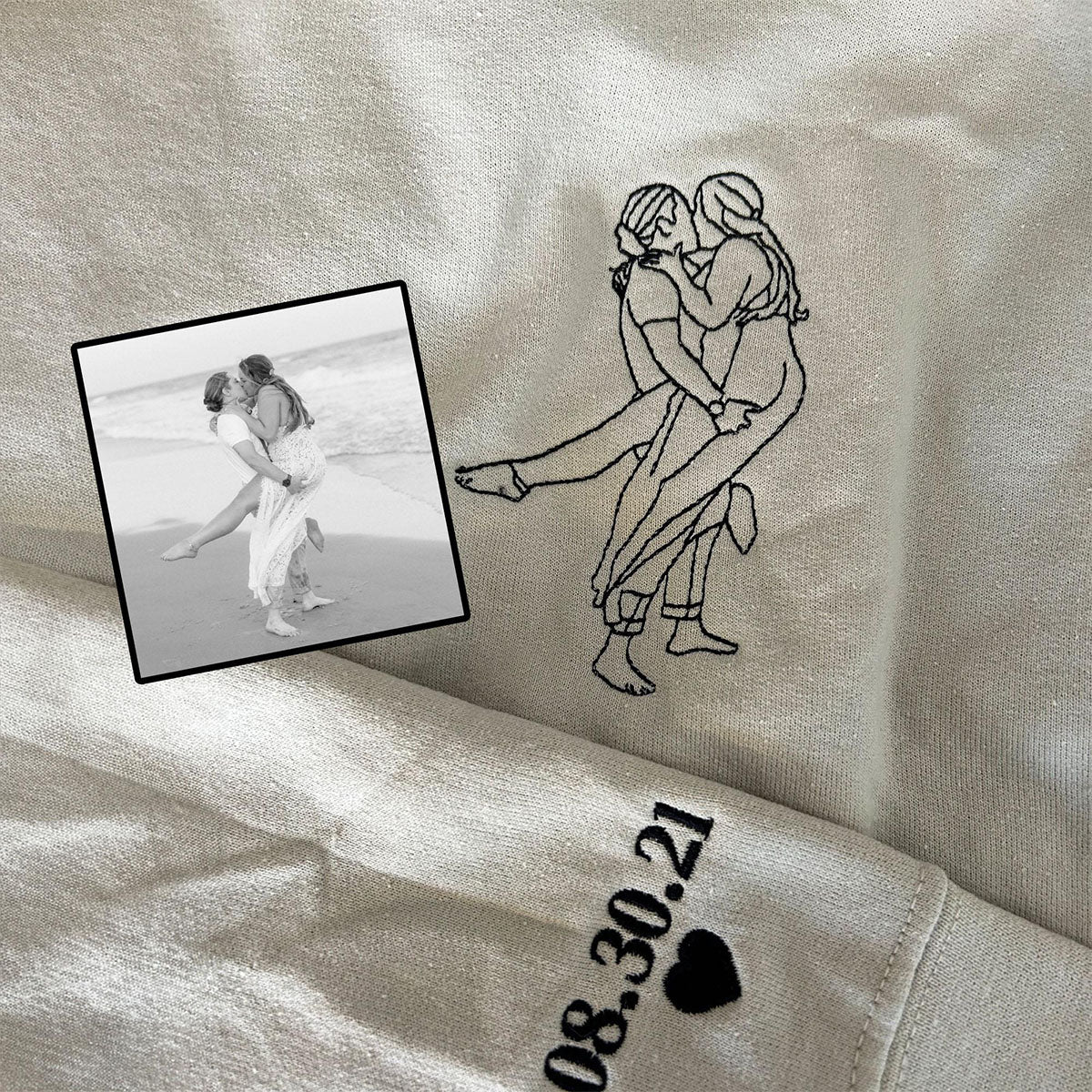 Custom Outline Sweatshirts Personalized Boyfriend and Girl Friend Portrait