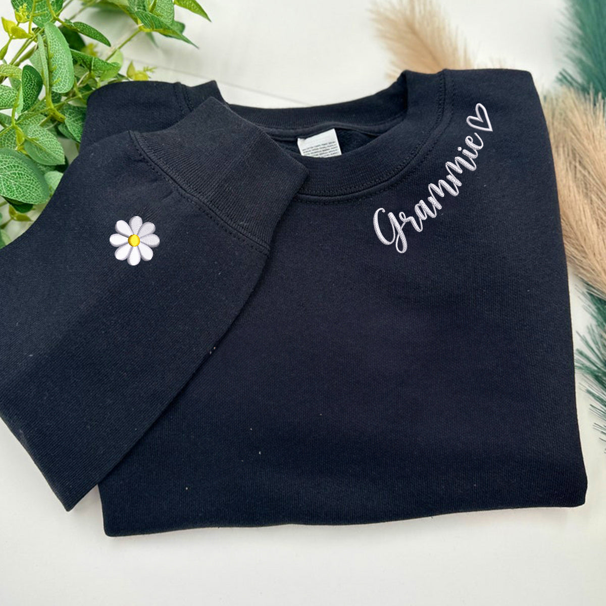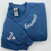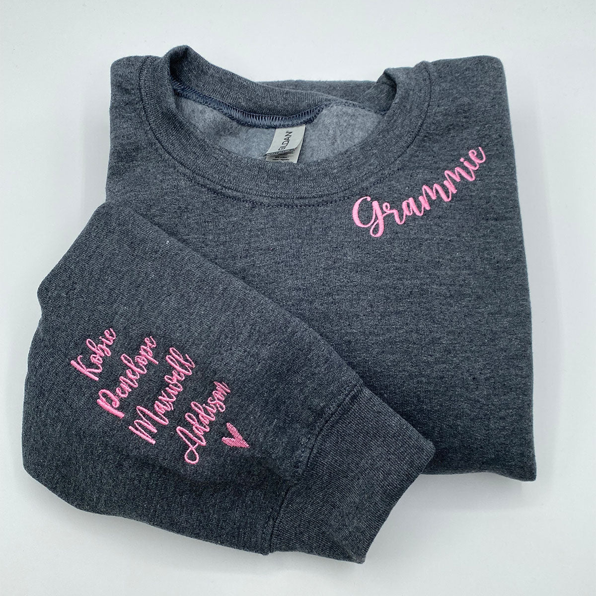 Custom Embroidered Grammie Sweatshirt Hoodie with Grandson Names on Sleeve