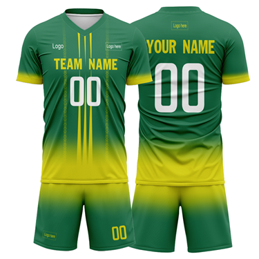 Men Custom Figure Yellow Green Sublimation Soccer Uniform Jersey