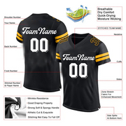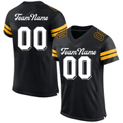 Be the ultimate fan in our custom black and yellow-white mesh authentic football jersey. Designed for style and comfort, this jersey is perfect for showing off your team spirit and standing out from the crowd. Make it your own with personalized customization options. Game on!