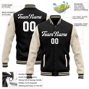 Men Custom Black Cream Bomber Full-Snap Varsity Letterman Two Tone Baseball Jacket
