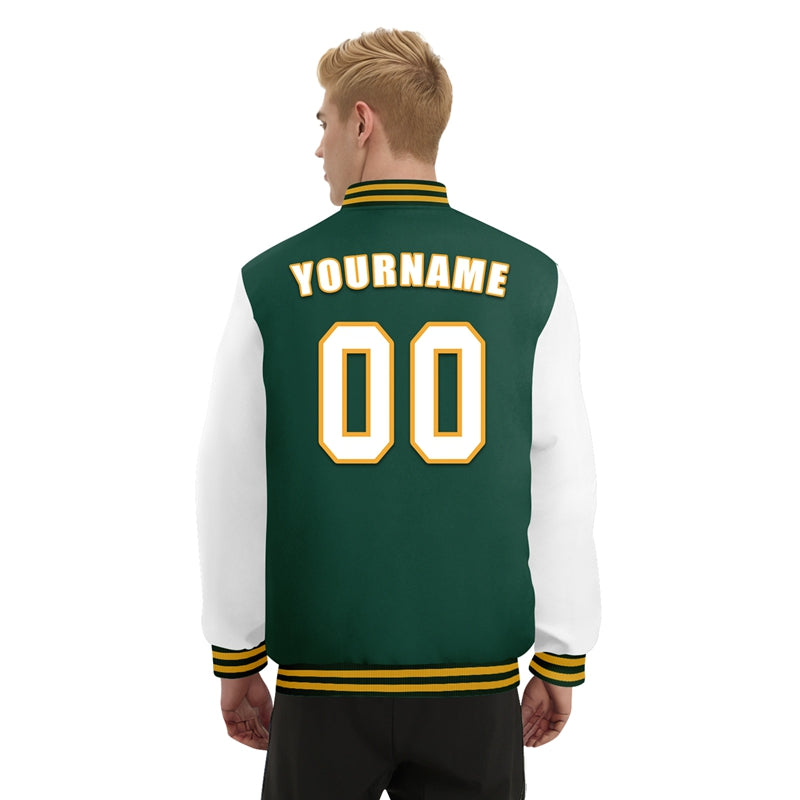 Men Custom Green White Letterman Two-Tone Baseball Jacket