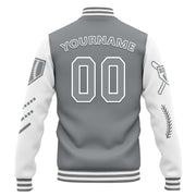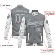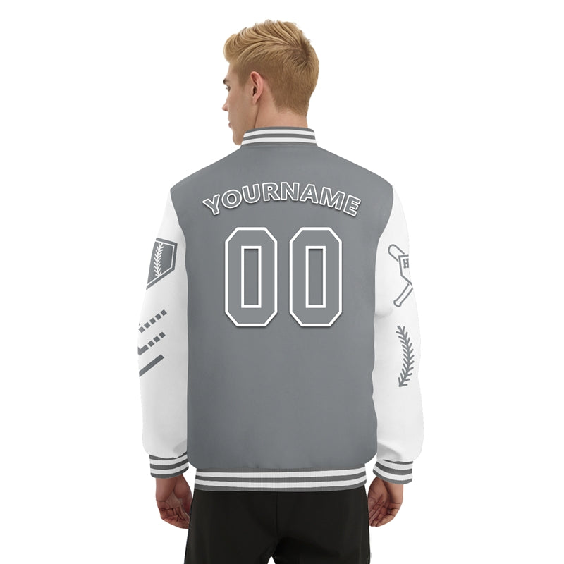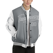 Men Custom Grey White Letterman Two-Tone Baseball Jacket