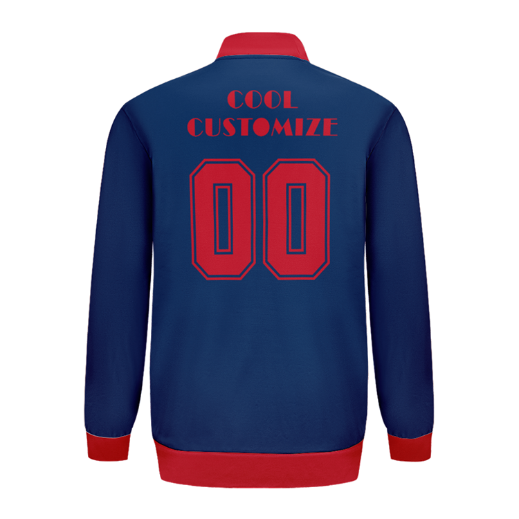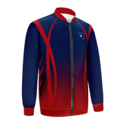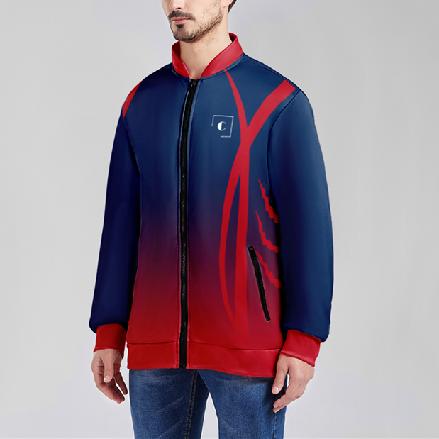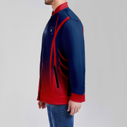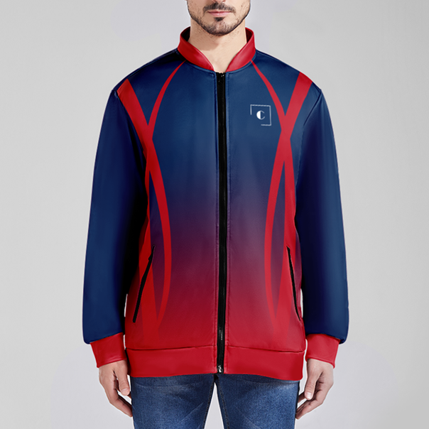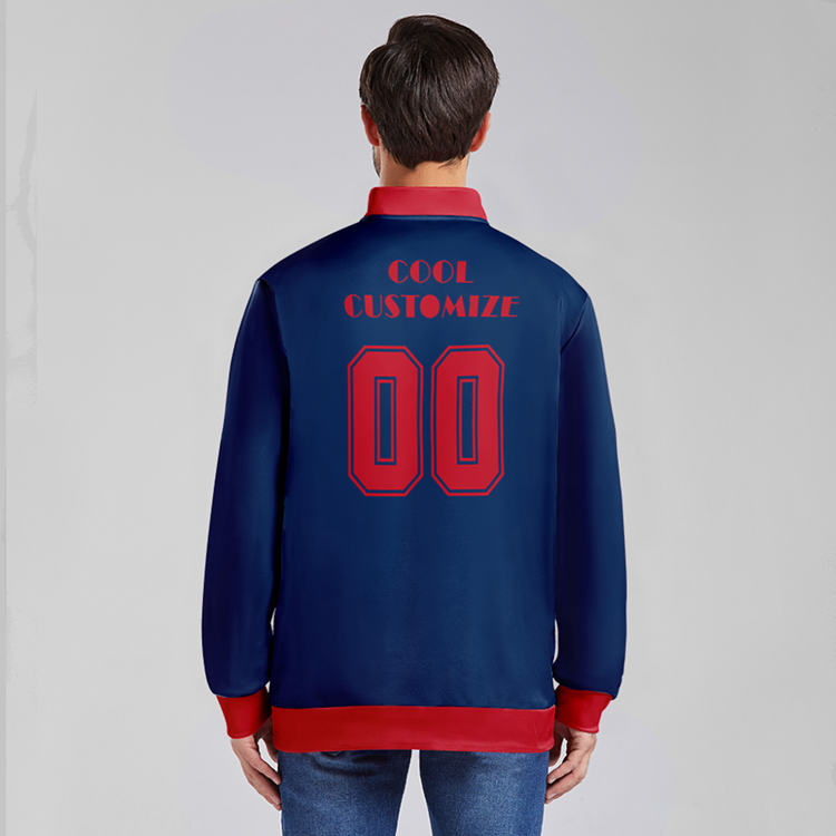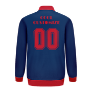 Embrace bold, custom style with our Navy Blue Red Letterman Jacket. The two-tone design adds a daring twist to a classic look. Be a trendsetter with this unique, eye-catching jacket.