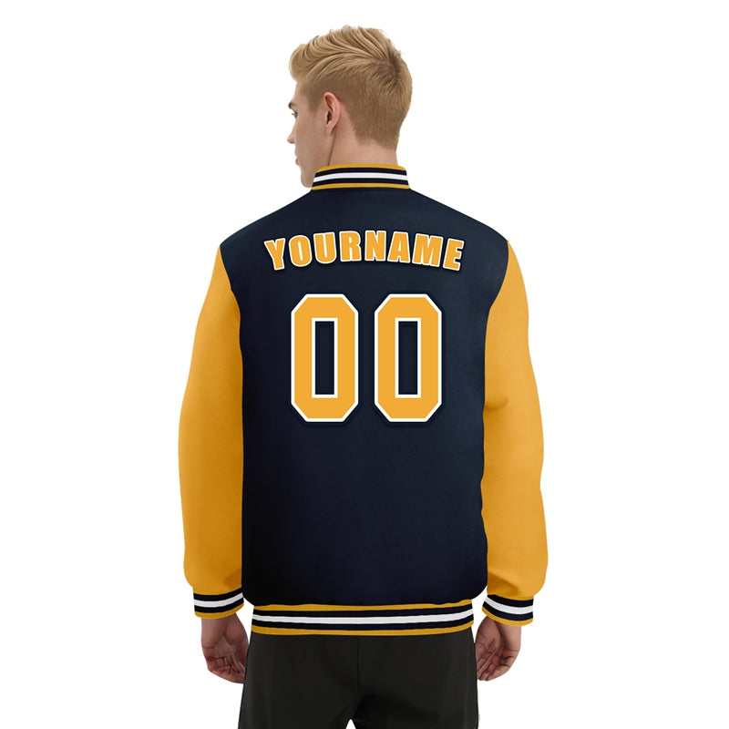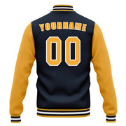 Men Custom Navy Blue Yellow Letterman Two-Tone Baseball Jacket