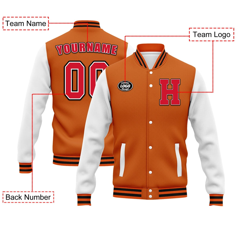 Unleash your bold and adventurous side with our Custom Orange White Letterman Two-Tone Jacket! Personalize your style with its sleek design and standout colors. Perfect for those who aren't afraid to take risks and stand out from the crowd. Make a statement and let your fashion speak for itself!