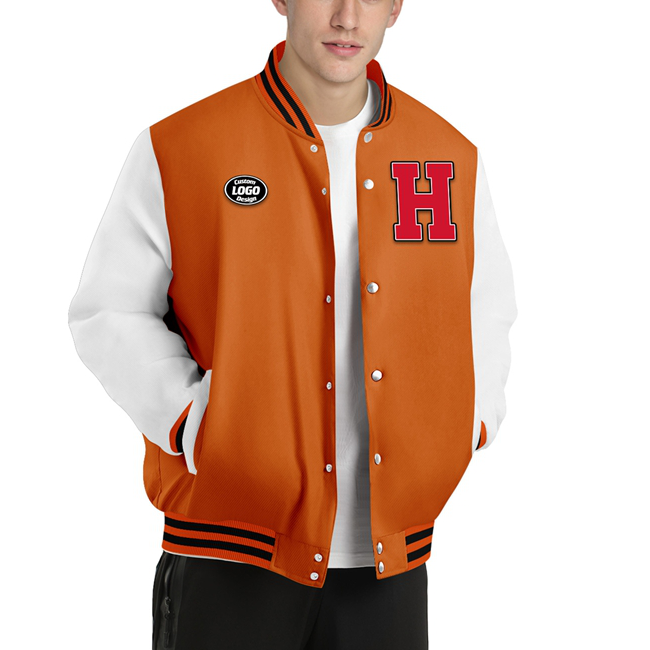Men Custom Orange White Letterman Two-Tone Baseball Jacket