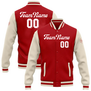 Men Custom Red Cream Bomber Full-Snap Varsity Letterman Two Tone Baseball Jacket