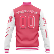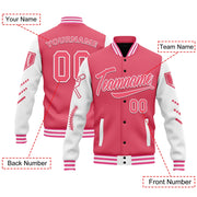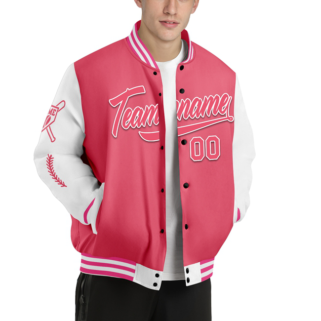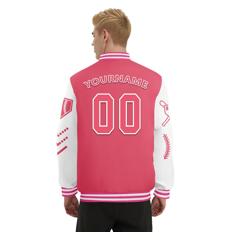 Men Custom Rose Pink White Letterman Two-Tone Baseball Jacket
