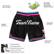 Men Custom Black Light Blue-Pink Authentic Throwback Basketball Shorts