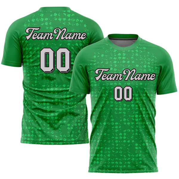 Introducing the Custom Figure White-Green Sublimation Soccer Uniform Jersey! Made with top-quality materials and sublimation printing, this jersey offers 100% customization for your team or club. Stay comfortable and stylish on the field while showcasing your unique design. Order now and dominate the competition!