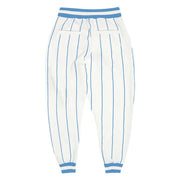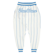 Dominate the competition in our Custom White Blue Pinstripe Red-Gold Sports Pants! Made for those who take risks and crave adventure. Stride in confidence with bold pinstripes and vibrant red and gold accents. Stand out and conquer with ultimate style and comfort.