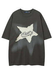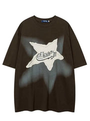 Mens Vintage Washed Letter Graphic Tee Star Print Design